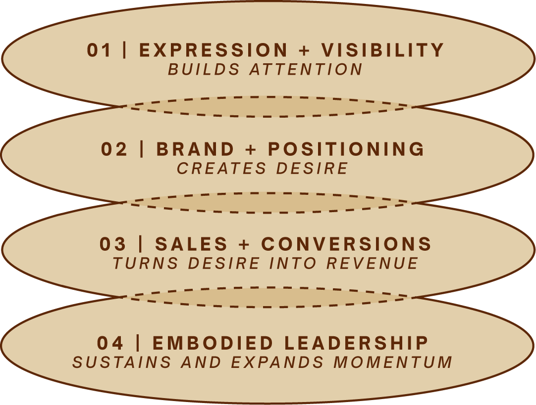 HERE YOU’LL OWN YOUR POSITION IN THE MARKET, BUILD BRAND CLARITY, AND MAKING IT OBVIOUS WHY YOU ARE THE ONE. THIS IS ABOUT BECOMING UNFORGETTABLE IN HOW YOU SHOW UP.